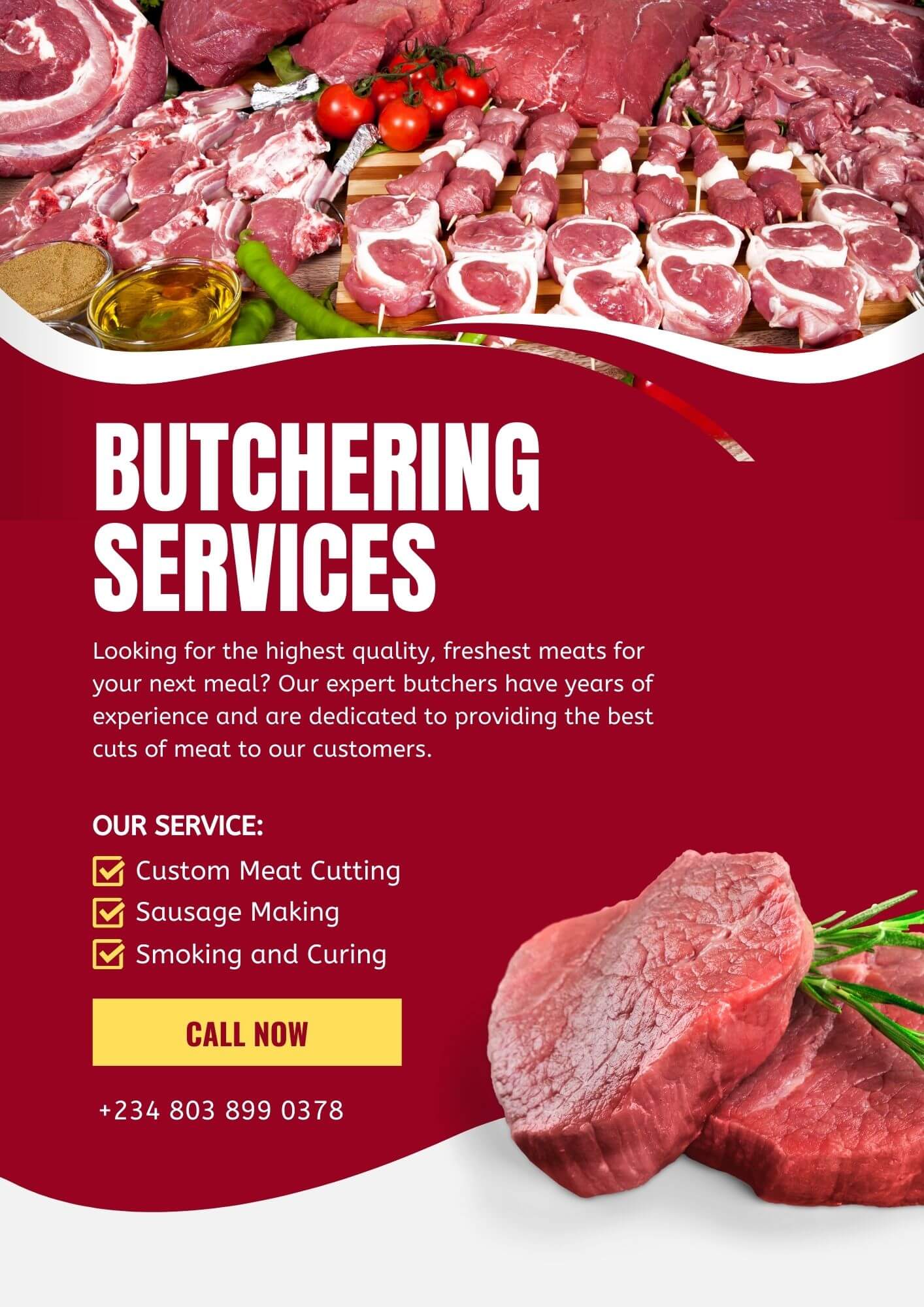 At Ivan Agro Farms, we take pride in our butchering services, delivering top-quality cuts with precision and expertise. Our team of expert butchers ensures that every cut meets the highest standards of hygiene, freshness, and taste. Whether you’re a restaurant owner, a meat retailer, or a consumer looking for premium meat products, we have the solutions to meet your needs.